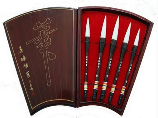 湖筆的第三個特點(diǎn)是品種多。目前以用途可分書寫繪畫、工業(yè)、特用三大類用筆;以性能分有軟、硬、兼三類。這三類所用的筆料就有十多種獸毛及其它禽羽等為原料,像硬毫中的黃鼠狼(鼬尾)、石獾、馬尾、豬鬃、山兔以富強(qiáng)性,落墨勁有力流利見長,軟毫的羊毫長而穎銳,運(yùn)軟圓渾圓含墨飽滿,枯潤適用得當(dāng)則墨色筆意變化無窮。兼毫則剛?cè)嵯酀?jì)宜書宜畫。如似大小長短粗細(xì)來分那就有數(shù)百種之多,這和中國許多毛筆產(chǎn)地品種都類似的。
