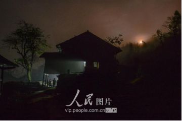 一般要到快過(guò)春節(jié)的時(shí)候,男方家才專門(mén)請(qǐng)人去接女方來(lái)洗糯米、打糍粑,新娘方能在夫家住上一夜;在來(lái)年農(nóng)忙時(shí)節(jié),又接女方來(lái)幫忙,夜里仍不能在男方家留宿,幫完忙當(dāng)晚即回去,只有待到女方有身孕后,新娘才到夫家長(zhǎng)住。圖為11月16日夜,新娘潘芝銀家為準(zhǔn)備婚禮,燈火徹夜長(zhǎng)明。