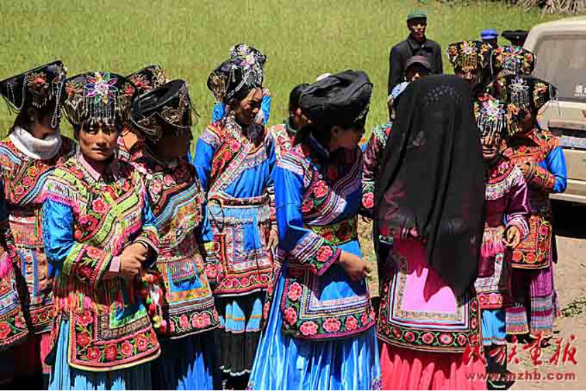 身著艷麗服飾的送親隊(duì)伍