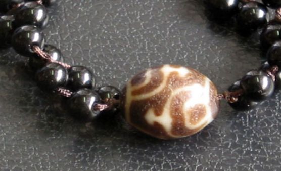 藏族同胞過去認為,九眼石天珠的內部結構具有天然宇宙強烈的磁場能量,造成天珠有不可思議的感應。所以天珠也成了藏族同胞最貴重的護身符,人們相信,誠心供養(yǎng)佩戴天珠可以消除業(yè)障、獲得福報、防止中風及免除被外道邪魔傷害,又可增強體力,增加財富等等。