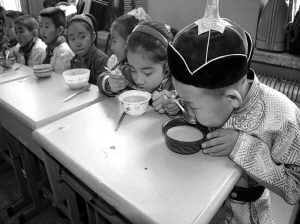 圖為孩子們?cè)谏蟼鞒忻褡逦幕厣故菊n。奶茶原為中國(guó)北方游牧民族的日常飲品,至今已有千年歷史,蒙古奶茶至今仍然是日常飲用及待客的必備飲料。陳巴爾虎旗民族小學(xué)開展了具有濃濃的民族風(fēng)味的實(shí)踐活動(dòng)課,通過(guò)一起熬制奶茶,學(xué)生和家長(zhǎng)、老師們都受益匪淺。