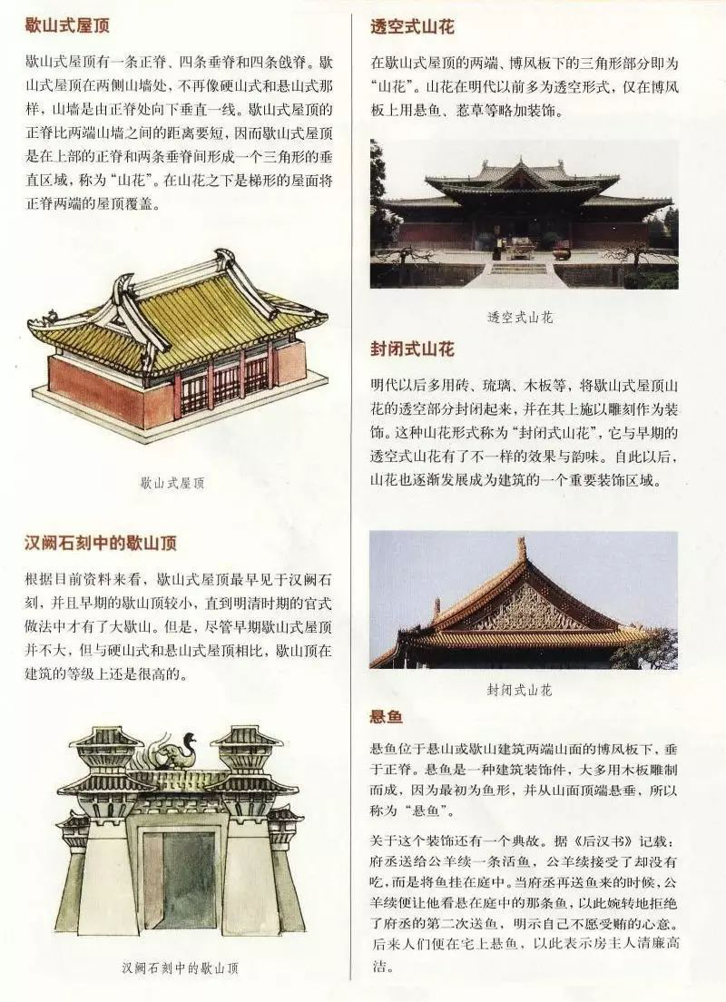 自從西周時代屋頂使用瓦件之后,人們對瓦當(dāng)與屋脊逐漸重視,因為屋面兩坡相交的地方必須把屋脊搭蓋好,才不致漏雨,故該建筑形式逐漸形成,實物以漢代闕樓和唐代佛光寺大殿為早,遠景設(shè)計研究院應(yīng)用各種屋頂形式于古建筑設(shè)計中。