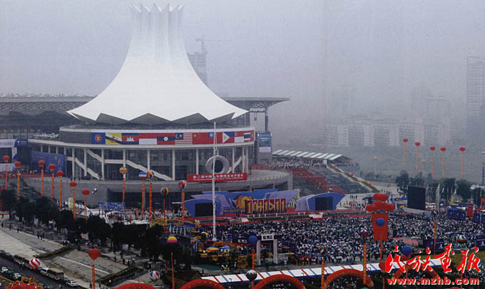 2004年,中國—東盟博覽會開始舉辦。15年來,中國—東盟博覽會承載促進雙向交流合作的重要使命和催生多贏局面的美好愿景,推動中國—東盟經貿合作邁進新時代。圖為2005年第二屆中國—東盟博覽會開幕式?!睹褡瀹媹蟆?005年第12期