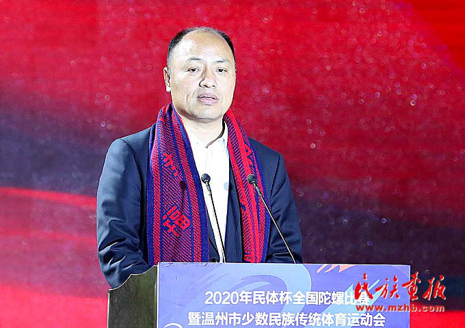 為發(fā)展民族傳統(tǒng)文化體育,促進(jìn)民族交往交流交融,推進(jìn)民族團(tuán)結(jié)進(jìn)步事業(yè),不斷鑄牢中華民族共同體意識(shí),11月27日,2020“民體杯”全國(guó)陀螺比賽暨溫州市少數(shù)民族傳統(tǒng)體育運(yùn)動(dòng)會(huì)在浙江省溫州市鹿城區(qū)白鹿洲公園隆重開幕。浙江省委常委、溫州市委書記陳偉俊,國(guó)家民委監(jiān)督檢查司司長(zhǎng)隋青,浙江省民宗委副主任鐘新章,溫州市委常委、統(tǒng)戰(zhàn)部部長(zhǎng)施艾珠,市委常委、秘書長(zhǎng)王軍,市人大常委會(huì)副主任張洪國(guó),市人民政府副市長(zhǎng)陳應(yīng)許,市政協(xié)副主席諸葛啟釧等領(lǐng)導(dǎo)出席開幕式,浙江省、市、縣民族工作相關(guān)單位負(fù)責(zé)人及裁判員、教練員、運(yùn)動(dòng)員代表600余人參加了開幕式。