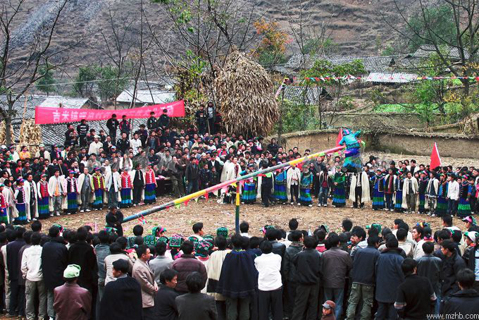 彝族打磨秋表演 古道倫攝影 引自民族畫(huà)報(bào)
