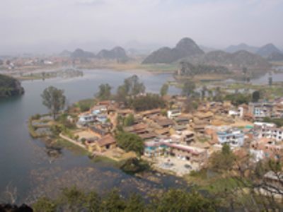 在一次學(xué)術(shù)會(huì)議上,筆者請(qǐng)教了首倡并主導(dǎo)“民族文化生態(tài)村”試點(diǎn)建設(shè)的尹紹亭教授,得知在他們首期的五個(gè)試點(diǎn)村落建設(shè)中,仙人洞村是比較成功的,于是在本項(xiàng)目的調(diào)查中,仙人洞村成為重點(diǎn)考察的對(duì)象之一。“仙人洞彝族文化生態(tài)村”位于云南丘北縣城西北16公里的普者黑湖畔?!捌照吆凇睘楫?dāng)?shù)匾妥迦瞿嵴Z(yǔ),意為“魚(yú)蝦多的湖潭”。普者黑實(shí)際是由眾多湖泊、河流構(gòu)成,總面積達(dá)165平方公里,已經(jīng)開(kāi)發(fā)成由5個(gè)景區(qū)、56個(gè)景點(diǎn)組成的滇東南國(guó)家級(jí)著名旅游景區(qū)。