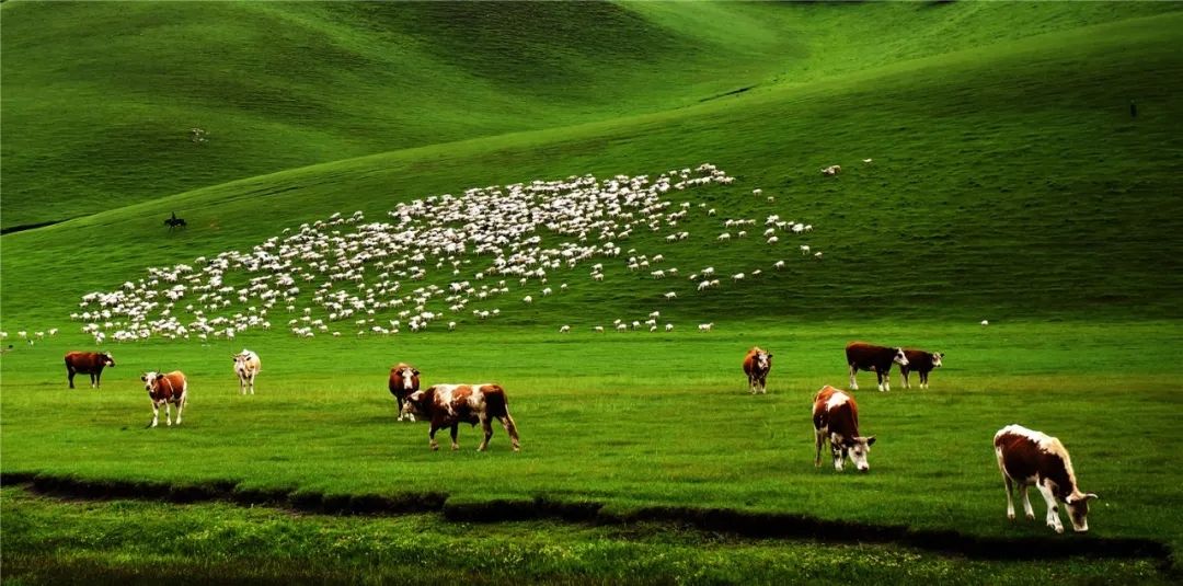 雄鷹展翅上蒼穹,遍地牛羊接遠(yuǎn)峰。