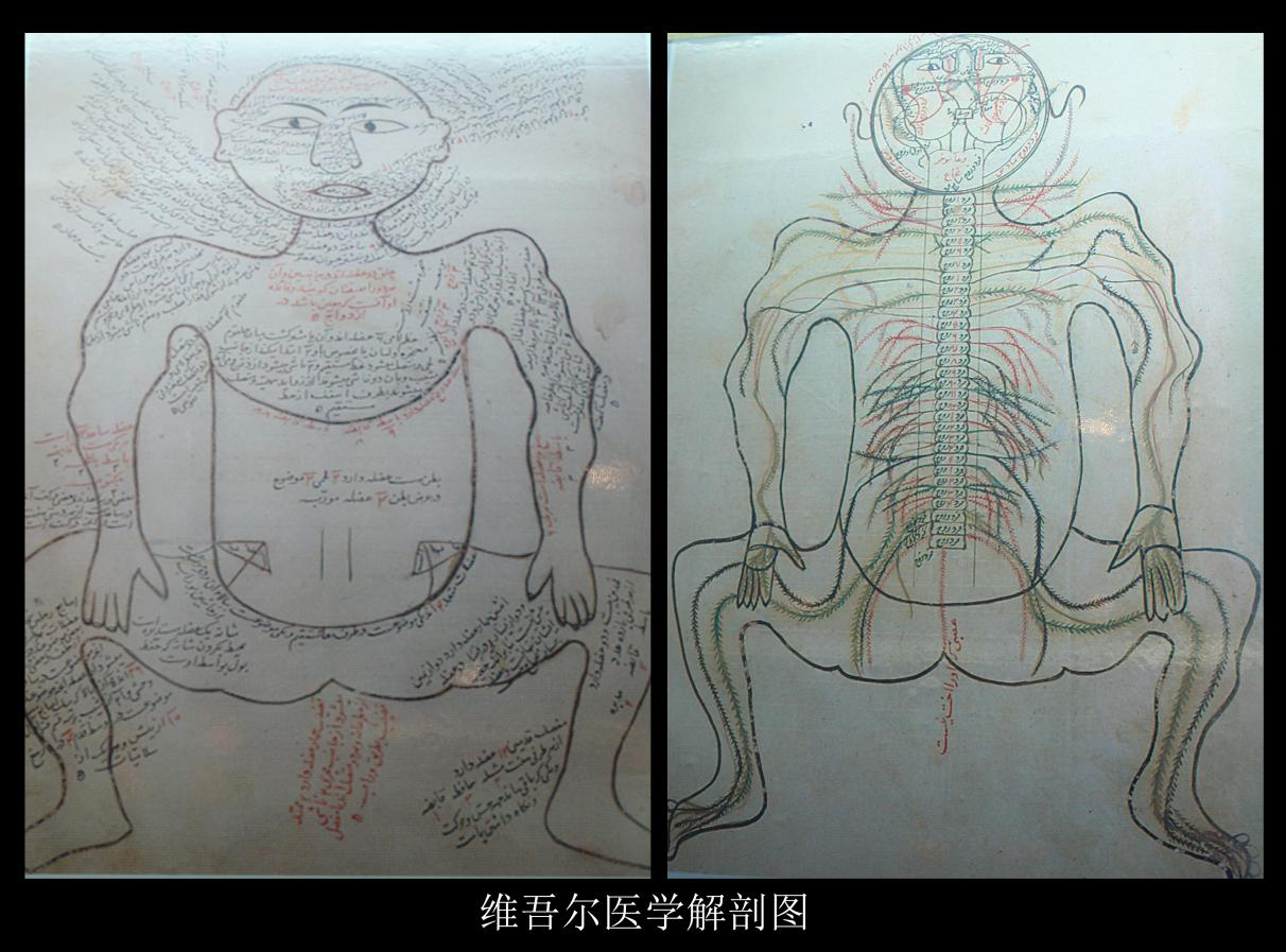維吾爾醫(yī)藥學(xué)經(jīng)過兩千五百多年漫長而艱難的積累,為東西方醫(yī)學(xué)的發(fā)展做出了重大貢獻(xiàn),同時(shí),它也吸收了東西方醫(yī)藥學(xué)的精華,終于形成了比較完整的、獨(dú)有特色的理論體系,即:四大物質(zhì)學(xué)說(“艾爾康”學(xué)說)、氣質(zhì)學(xué)說(“密雜吉”學(xué)說)、體液學(xué)說(“合立體”學(xué)說)、器官血學(xué)說(“艾扎”學(xué)說)、力學(xué)說(“庫外體”學(xué)說)、素質(zhì)學(xué)說(“臺(tái)比艾提”學(xué)說)、行與神學(xué)說(“艾非阿勒”和“艾爾瓦”學(xué)說)、健康學(xué)說(“賽艾提”學(xué)說)、疾病學(xué)說(“買熱孜”學(xué)說)、診斷學(xué)說(“臺(tái)西合斯”學(xué)說)、危象學(xué)說(“波核浪”學(xué)說)、治療學(xué)說(“依拉吉”學(xué)說)等,解釋了人體與外界的相互辯證關(guān)系,創(chuàng)立了一套診治疾病的治療學(xué)說和藥物學(xué)說。