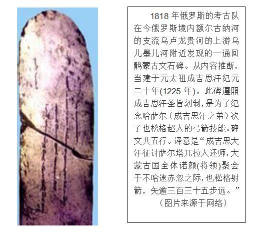 在成吉思汗叱咤風(fēng)云的時代,中國北方與宋王朝并立先后存在過西夏、遼、金、蒙古等少數(shù)民族政權(quán)。這些政權(quán)的主體民族,西夏國的黨項、遼國的契丹、金國的女真、蒙古國的蒙古,都有本民族語言,最初都沒有本民族文字。建立政權(quán)后,為了適應(yīng)政治和文化發(fā)展的需要,他們有的創(chuàng)立了本民族文字,如西夏文、契丹字、女真字等等?;佞X西遷之前,與蒙古共同生活在蒙古高原,他們都是游牧民族,經(jīng)濟(jì)文化與許多相似性,語言上同屬阿爾泰語系,分屬蒙古語族和突厥語族,因此蒙古語與維吾爾語的一些日常用語和詞匯是相同或相近的。如黑(哈喇)、黃(霞喇)、金(阿拉泰)在蒙古語與維吾爾語中發(fā)言是一樣的。成吉思汗命塔塔統(tǒng)阿用回鶻字母創(chuàng)建蒙古文字,就是在這樣的時代背景和回鶻、蒙古的文化聯(lián)系上產(chǎn)生的。現(xiàn)存用回鶻式蒙古文寫成的文獻(xiàn)中,最早的是1225年的《也松格碑》(成吉思汗石碑)。
