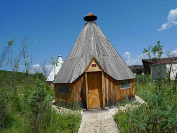 “撮羅子”又稱“斜仁柱”或“撮羅昂庫”,是鄂溫克以及鄂倫春、赫哲等東北狩獵和游牧民族的一種圓錐形“房子”?!按榱_”是“尖”、“昂庫”是“窩棚”?!靶比省笔恰澳緱U”,“柱”是“屋子”。把兩種名稱的意思合起來,就是“用木桿搭起的尖頂屋”,這正是“撮羅子”最主要的特征。