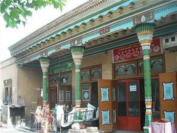 多用虛實對比,重點點綴的手法,喜歡采用磨磚拼花、石膏花、彩畫、磚雕、木刻等裝飾,裝飾圖案以及窗欞花飾,多為花草或幾何圖形;門窗口多為拱形;色彩則以白色和綠色為主調,表現(xiàn)出伊斯蘭教的特有風格。