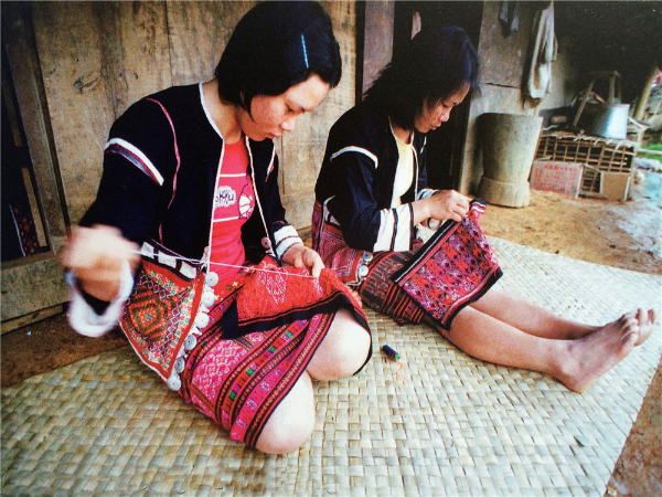 繡”是指黎族婦女用彩色線在棉、麻等布料上繡制出各種圖案,或者在織錦圖案編織完成后,再進(jìn)行補(bǔ)繡,提高圖案的效果。黎族織錦的主體圖案一般都是刺繡的,主體圖案中的若干局部都要靠刺繡來(lái)完成。