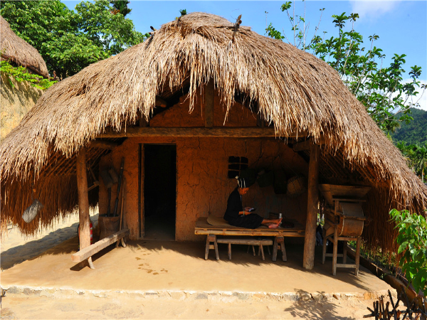 船形屋有高腳船形屋與矮腳(落地式)船形屋之分,外形像船篷,呈拱形。船形屋的建筑特點(diǎn)是,平面呈縱長(zhǎng)方形,兩端山墻設(shè)入口,屋蓋一般是半圓拱形,房屋的輪廓像是一條倒扣的帆船。這類房屋不設(shè)窗戶,只從兩端開(kāi)門,前面有一個(gè)陽(yáng)臺(tái),置一個(gè)樓梯供上下,進(jìn)門后整個(gè)“船”身分為三節(jié),像三個(gè)艙,各有小門相通,第一節(jié)是“廳”,設(shè)有閣樓,存放糧食與雜物、家什等;第二節(jié)是臥室,除了放床以外,還放火灶,作為蒸酒或烤火之用;第三節(jié)面積最小,開(kāi)一個(gè)后門,是每天舂米和放置生產(chǎn)工具、雞窩的地方。