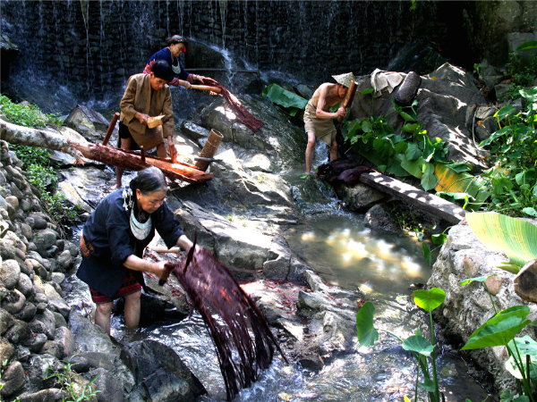 樹(shù)皮布是以植物樹(shù)皮為原料,經(jīng)過(guò)選樹(shù)木、扒樹(shù)皮、修整、浸泡脫膠、漂洗、曬干、拍打等步驟制成的一種無(wú)紡布料。加工好的樹(shù)皮布經(jīng)裁剪、縫制可以做成被子、帽子上衣、帽子等。
