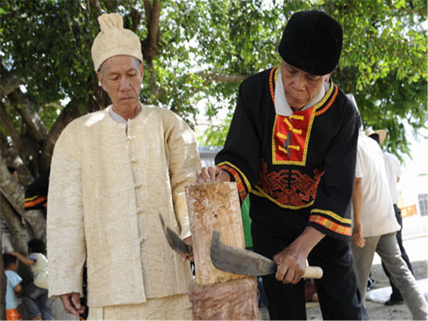 黎族樹(shù)皮布制作技藝:黎族制作樹(shù)皮布的歷史悠久,樹(shù)皮布是人類衣物從無(wú)紡布向有紡布發(fā)展的歷史見(jiàn)證。據(jù)考古學(xué)家研究,海南島樹(shù)皮布的歷史約有4000年。延續(xù)了數(shù)千年的樹(shù)皮布,記載了人類發(fā)展的歷程。盡管樹(shù)皮布已失去了它往日的作用,可是黎族人民卻不能忘記祖輩傳承下來(lái)的技藝。如今在哈方言、潤(rùn)方言黎族中,有些家庭將制作樹(shù)皮布的技藝代代相傳,他們的子孫仍能識(shí)別制作樹(shù)皮布的樹(shù)種,并能掌握制作樹(shù)皮布的技術(shù),這對(duì)研究黎族早期無(wú)紡布有著重要的意義。然而,目前整個(gè)海南省掌握樹(shù)皮布制作技藝的民間藝人不足5人。