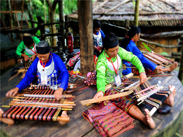 黎族傳統(tǒng)紡染織繡技藝:黎族婦女的織錦技藝存續(xù)了3000年,堪稱紡織史上的“活化石”。黎族織錦主要包括紡、染、織、繡四大工藝。黎族傳統(tǒng)紡染織繡技藝由黎族棉紡織工藝、麻紡織工藝及熏染工藝合并而成,黎錦是紡染織繡技藝的典型代表。