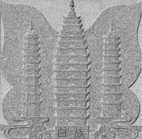 崇圣寺三塔是歷史文化名城大理的標(biāo)志和象征。蝴蝶象征忠貞愛情,常見于白族傳統(tǒng)建筑、服飾或器物的裝飾圖案。大理三塔和蝴蝶圖紋,是白族文化的象征。