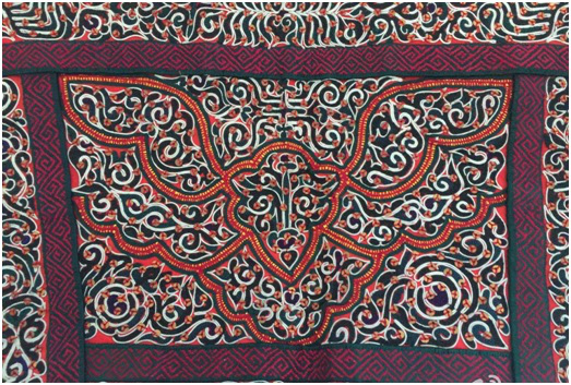 正因馬尾繡的工藝獨特,蘊含著豐富的文化內涵,2006年水族馬尾繡入選第一批國家級非物質文化遺產(chǎn)名錄。而馬尾繡背兒帶更是將水族馬尾繡的藝術價值體現(xiàn)得淋漓盡致。民族文化宮博物館所藏的這件馬尾繡背兒帶,刺繡精美,展現(xiàn)了水族婦女嫻熟的刺繡技藝,是研究水族民俗、民風、圖騰崇拜等民族文化的珍貴藝術資料。