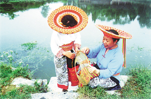 這是一個(gè)特別愛美的民族。男人們著裝瀟灑隨意,頭纏黑白相間的方格頭帕,倍顯英俊。女人們則身穿黛藍(lán)色對襟長衫,鑲著的紅布邊和紅布扣純?yōu)檠b飾。下著素艷相融的花裹裙,腰纏五顏六色的腰帶,頭上再配一個(gè)后面吊有長長彩須、狀似倒扣斗篷的火紅頭巾,把個(gè)茫茫綠野點(diǎn)綴得山花爛漫、如畫如詩。