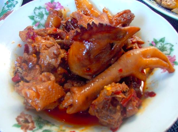“布依雞八塊”是布依族人的一道傳統(tǒng)的民族風(fēng)味菜?!安家离u八塊”也是布依族辦紅白喜事或平常用來(lái)招待客人的傳統(tǒng)菜。