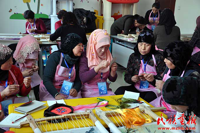 東鄉(xiāng)縣婦聯(lián)開(kāi)展的手工編織技能培訓(xùn)使更多東鄉(xiāng)族婦女利用刺繡等一技之長(zhǎng)增加了家庭收入(胡發(fā)偉 攝影)