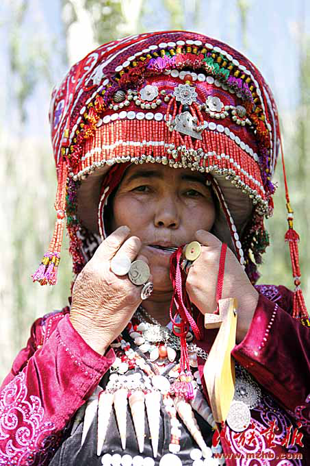 “奧孜庫姆孜”是同時用嘴吹和用手指彈奏的樂器,琴上只有一個小小的鋼片用來彈奏。這種樂器只有柳葉大小。演奏時,琴頭放入嘴里,抵于門齒之間,用食指彈奏鋼片,并同時在口腔內(nèi)呼吸運氣進行吹奏。在彈奏和呼吸之間奏出婉轉(zhuǎn)美妙的樂曲,因此被稱為柯爾克孜族的“美妙之口”。