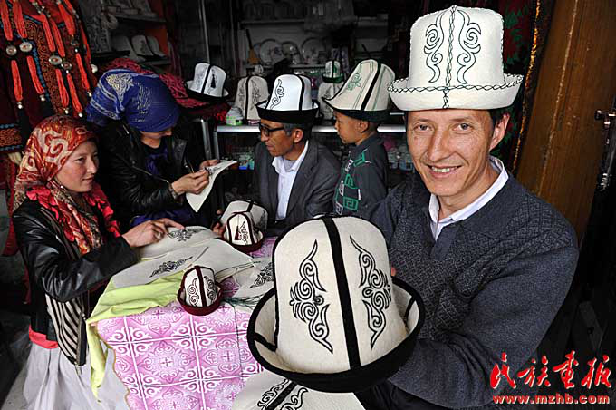 阿克陶縣克孜勒陶鄉(xiāng)藝人制作氈帽