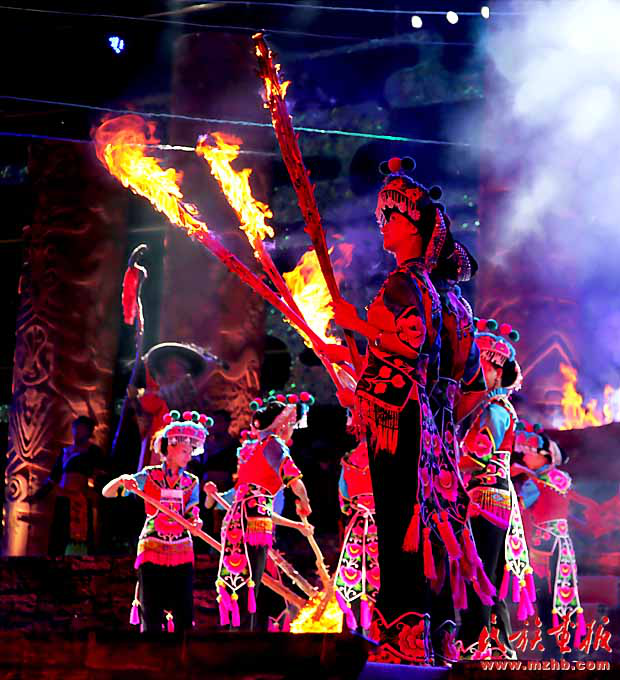 2017年火把節(jié)上楚雄民族服飾賽裝節(jié)目展演。賽裝節(jié)已經(jīng)不局限于大山深處,而是走上了更廣闊的舞臺(楚雄州民宗委 供圖)