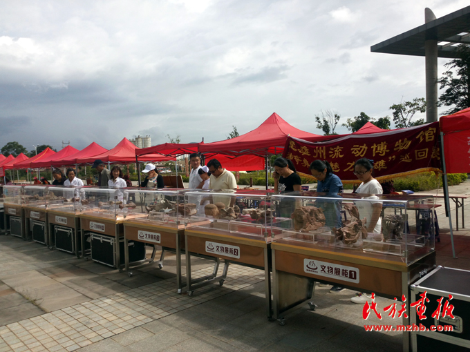 “去年我們?nèi)チ宋涠ōh(huán)州鄉(xiāng)小學(xué),大車開過去5個(gè)多小時(shí)。我記得有個(gè)三年級(jí)的小朋友看了展覽,激動(dòng)得熱淚盈眶。他說早知道州里有個(gè)博物館,但從來沒想到還能在家門口看到?!碧K輝介紹說,“每一次流動(dòng)展覽,都要帶去一個(gè)專題,爭取講深講透。那次帶了恐龍的頭骨、脛骨,還特別安排了一塊恐龍骨讓孩子觸摸?!碑?dāng)一件件珍貴的恐龍化石、世界最古老的銅鼓、亞洲最早古人類化石、精美的彝族傳統(tǒng)服飾走出博物館深院呈現(xiàn)在田間地頭、鄉(xiāng)村校園、軍營操場(chǎng)時(shí),博物館與群眾更近了,文化惠民更接地氣了。流動(dòng)博物館成了民族文化傳播的載體和民族情感融合的橋梁。