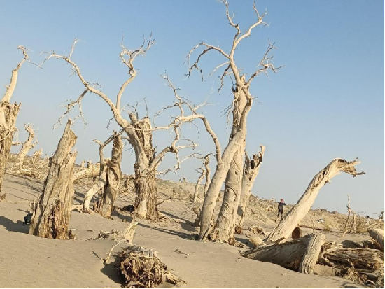 胡楊,又稱胡桐、英雄樹、異葉胡楊、異葉楊、水桐、三葉樹,是生長在沙漠中的樹種,它耐寒、耐旱、耐鹽堿、抗風(fēng)沙,有很強的生命力。