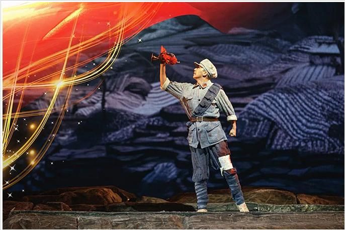《花兒與號(hào)手》是一部以紅軍長(zhǎng)征路過(guò)六盤山為背景創(chuàng)作的音樂(lè)劇,全劇展現(xiàn)了長(zhǎng)征路上紅軍戰(zhàn)士的理想信念和“長(zhǎng)征是宣言書、是宣傳隊(duì)、是播種機(jī)”這一核心思想,弘揚(yáng)了中國(guó)共產(chǎn)黨百年征程中展現(xiàn)出的無(wú)私無(wú)畏的革命精神。