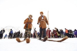 如今,在阿勒泰,毛皮滑雪板的功能已從狩獵出行轉(zhuǎn)向體育運動,成為當(dāng)?shù)乇┞糜蔚奶厣椖?。?jù)統(tǒng)計,截至目前,阿勒泰市2018年至2019年冰雪季已接待游客73.72萬人次,實現(xiàn)旅游消費總額達9.92億元。