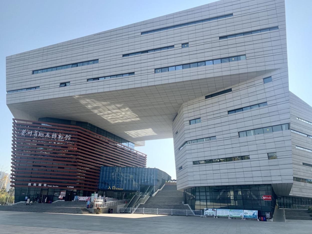 貴州地質(zhì)博物館外景:融合了貴州梵凈山“蘑菇石”、沉積巖地層等地質(zhì)元素,曾獲2020年中國(guó)建筑工程“魯班獎(jiǎng)”