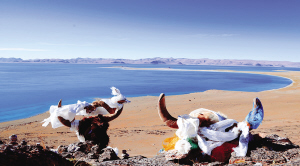 放眼望去,羌塘草原上有許多大大小小的湖,它們?nèi)纭疤焓怪疁I”“天空之鏡”,毫無規(guī)則地鑲嵌在草原上。湖泊,在我們的藏族司機(jī)桑堆師傅口中是蒼茫大野的靈魂,是神族們居住的水晶宮。所以,每有湖泊出現(xiàn)在桑堆師傅的視野里時,他總是表情肅穆,口念六字真言以祈求平安。