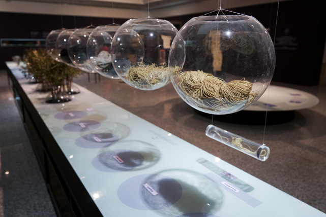 展覽還用特別的篇幅呈現(xiàn)了民族服飾對天然材質(zhì)的取用。天然,這種被視為極致的現(xiàn)代奢華,只不過是傳統(tǒng)社會(huì)中人類曾經(jīng)習(xí)以為常的日常生活狀態(tài)。那些在當(dāng)代被念念不忘、不斷回歸的傳統(tǒng)工藝表明,傳統(tǒng)依然活著,并且具有強(qiáng)大的生命力。
