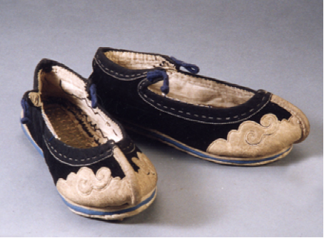 一般來(lái)說(shuō),一套傳統(tǒng)羌族服飾包括長(zhǎng)衫、坎肩、褲子、腰帶、圍腰、裹肚、帽子、鞋子等。一件羊皮坎肩需要兩張羊皮,制作時(shí)將羊皮浸泡在草木灰中發(fā)酵,用木銼子除去腐肉、油污,直至羊皮光滑后再縫制。羊皮坎肩四季均可穿,有“羊皮褂子兩面穿,天晴下雨不離肩”的俗語(yǔ)。坎肩無(wú)領(lǐng)、無(wú)袖、無(wú)扣,四周露出羊毛,晴天毛向內(nèi)穿,雨天毛向外穿,可作墊背,負(fù)重等,也可防寒、避雨;圍腰屬于婦女特有,有半襟和滿襟兩種,多用深藍(lán)色或黑色布料。半襟圍腰略成長(zhǎng)方形,長(zhǎng)約70厘米、寬約60厘米,圖案完全對(duì)稱。圍腰上的包袋是重點(diǎn)裝飾部分。滿襟圍腰上窄下寬,呈“凸”字型,一般長(zhǎng)為90厘米、底寬74厘米、胸寬20厘米,袋包多為一個(gè)大包或兩個(gè)相連的小包,位于圍腰中心,圍腰上布滿各種圖案,有團(tuán)花、火盆花、升子印、窗子格、燈籠須。這些復(fù)雜繁多、結(jié)構(gòu)巧妙的羌繡工藝,具有濃厚的羌族特色;羌族有草鞋這種日常鞋子,也有“云云鞋”。云云鞋的鞋尖微翹,貌似小船,鞋底較厚,以各色布包邊,用麻線密納,增強(qiáng)了鞋子的耐磨性。鞋幫繡有各形的彩色云紋,水波或杜鵑花紋式樣,故名“云云鞋”,也稱“花鞋”。羌族姑娘常將自己親手制作的花鞋送給小伙子,當(dāng)作定情信物?,F(xiàn)在,羌族人將云云鞋當(dāng)作節(jié)日的盛裝,只有在重大節(jié)日時(shí)才穿。