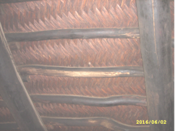 如今,錫伯族人多建蓋被稱為“來蘭皮”的房屋,大多為土木結構,木料為骨架,土坯為墻,有的有“瑪圖”(擋風的屏墻)。其大致造法是:當房屋壘到一定高度后,梁上放椽子,然后是檁條。把比碗口粗的椽子從中間鋸成兩片(細一些的不鋸)在墻上水平放7、9、11根(奇數(shù))。把剝了皮的葦桿(蘆葦桿踩扁后泡在水里數(shù)天,使之不易扯斷),俗稱“葦子把”,5-6根一把,用葦子隔3-4厘米一把扎在橫椽底下,在葦子上面抹粗麥葉子泥,等干后,房子里層再抹細泥上光,稱之為“來蘭皮”。在來蘭皮上面壘山墻封頂。