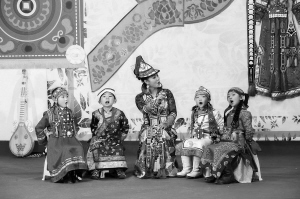 薩爾組合成員和裕固族兒童一起錄制兒童學(xué)語(yǔ)歌