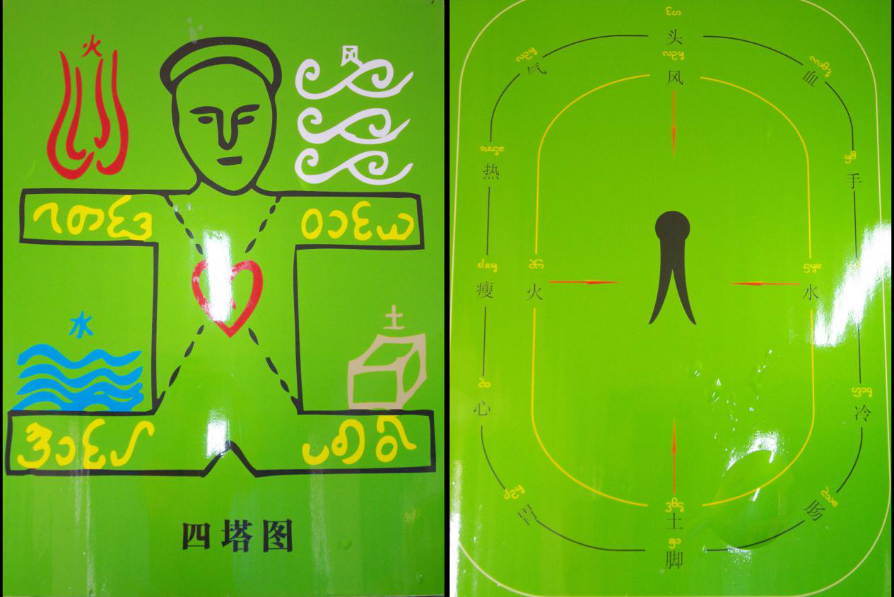 傣醫(yī)藥學(xué)的基礎(chǔ)理論包括塔都檔細(xì)(四塔理論:風(fēng)、火、水、土)、夯塔檔哈(五蘊(yùn)理論:色、識、受、想、行)、盤檔三(三盤理論)、特色雅解(解毒理論與解藥理論)、辨解帕雅攏(風(fēng)病論)等。