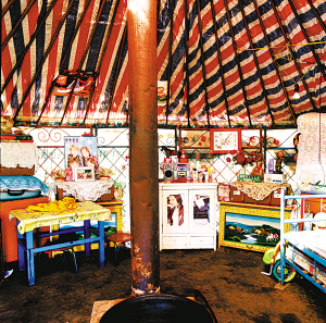 內(nèi)蒙古自治區(qū)鄂溫克族自治旗南輝蘇木牧場氈房內(nèi)的擺設