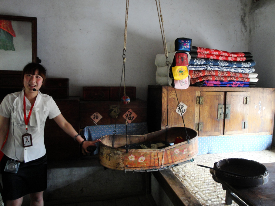 圖為滿(mǎn)族傳統(tǒng)嬰兒搖籃展示 老鐵攝于遼寧新賓赫?qǐng)D阿拉古城