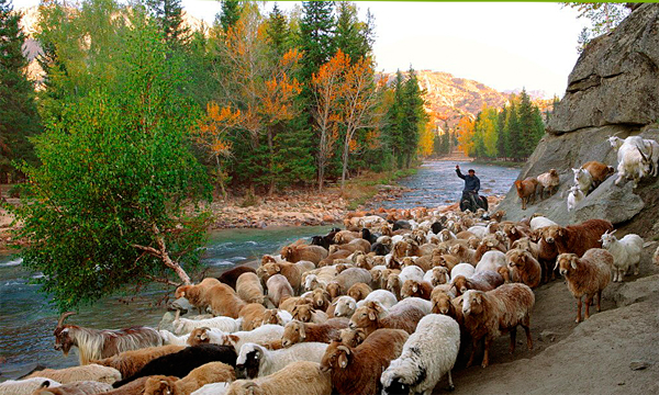 我國的主要牧業(yè)區(qū)在內(nèi)蒙古自治區(qū)、新疆維吾爾自治區(qū)、西藏自治區(qū)和青海省、四川省與云南省。從事畜牧業(yè)經(jīng)濟(jì)的主要有蒙古族、藏族、哈薩克族、柯爾克孜族、塔吉克族、裕固族,養(yǎng)殖牛羊較多的還有回族、維吾爾族、彝族、羌族、納西族等民族。畜牧業(yè)生產(chǎn)為廣大群眾提供了豐富的肉制品和乳制品。新疆蒙古族牧民晾曬羊肉干被稱為蒙古羊系之冠的“烏珠穆沁肥尾羊”,成年公羊重達(dá)100多公斤,光尾巴就有10公斤重,肉美味鮮,肥而不膩,鮮而不膻,北京“東來順”的涮羊肉采用的就是這種羊肉,受到中外賓客普遍稱贊。內(nèi)蒙古自治區(qū)養(yǎng)殖的三河羊和草原紅牛也是肉乳兼用的優(yōu)良品種。