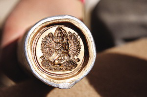 我在曼谷一家有40年歷史的佛像店“佛光工藝社”采訪時(shí)問到老專家這樣一個(gè)問題:泰國(guó)現(xiàn)在大概有多少種圖案的帕肯?所有聽到這個(gè)問題的人都是一聲驚嘆,然后笑說:“無數(shù)!”我非要問出個(gè)數(shù)來,他們便告訴我,泰國(guó)是一個(gè)歷史劃分復(fù)雜、族源廣博的國(guó)家,因此其包容性很強(qiáng),雖然九成以上的人信仰佛教,但是婆羅門教、道教、伊斯蘭教、基督教等在泰國(guó)都被接納,還有本土的一些法術(shù)也不曾被丟棄。所以,每天每個(gè)來定做的人都會(huì)有不同材質(zhì)的要求,不同圖像、符咒的組合,僅一個(gè)工藝社40年來就已經(jīng)做過幾十萬種的圖案組合。我收藏的擦擦有不同年代、不同材質(zhì)、不同價(jià)值的,除去年代久遠(yuǎn)的,頗有價(jià)值的就是一個(gè)藥擦,那是一個(gè)大威德金剛擦,專家說從被剝落的剖面看,里面有藥材的成分。我知道,在西藏,擦擦因材質(zhì)和制作人不同而有很大的區(qū)別。擦擦中最為稀有難求的一種叫“布擦”,那是寺廟僧人在保存活佛法體的時(shí)候,將那些浸透活佛法身血水的鹽巴或其它藥物和泥土融合后制成的。另一種較為珍貴的擦擦是活佛的骨灰與泥土摻混在一起制作而成的。還有一種藥物擦擦,是用不同的名貴藥材如珍珠、瑪瑙、藏紅花等藏藥合成制作,可服用治病。最普通的擦擦用一般的泥土制作,好一點(diǎn)的有膠泥、陶土、白泥等,這種擦擦成本低廉,在民間流傳最廣。