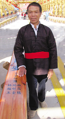 楊恒金個頭不高,膚色黝黑,手臂壯實(shí),敦厚少言。他用一雙寬厚結(jié)實(shí)的大手捧起了獎杯,也正是這雙手,打造出了一座座具有侗家特色的木結(jié)構(gòu)經(jīng)典建筑。因?yàn)樵趥鞒邪l(fā)揚(yáng)侗族建筑藝術(shù)方面的杰出貢獻(xiàn),楊恒金被中華木工委授予 “中華木作大師”稱號。
