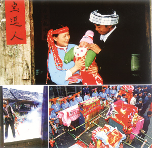 在花瑤同胞心中,沒有什么比人丁興旺、族群繁衍更加重要的了,所以他們常常把生孩子看得比結(jié)婚還要重,并要在孩子出生的第三天舉行熱烈盛大的誕生禮,稱之為“打三斗”。打三斗的禮儀,新奇、熱烈、繁縟而有趣,歷時(shí)兩天一晚。是對嬰孩、對主家的道賀,也是對寨子新添人丁的祝福。