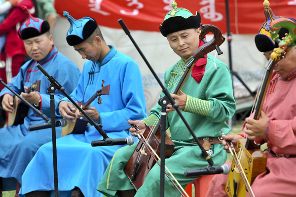 烏蘭牧騎隊員為牧民演奏《走馬》 2017年5月26日 胡虎虎攝
