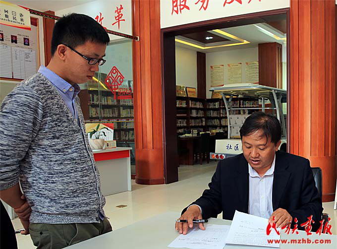 社區(qū)辦事大廳里,黨支部書(shū)記現(xiàn)場(chǎng)辦公解決實(shí)際問(wèn)題