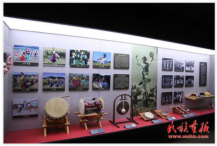 介紹農(nóng)樂舞的展示區(qū)。中國朝鮮族農(nóng)樂舞,是世界級(jí)非物質(zhì)文化遺產(chǎn)