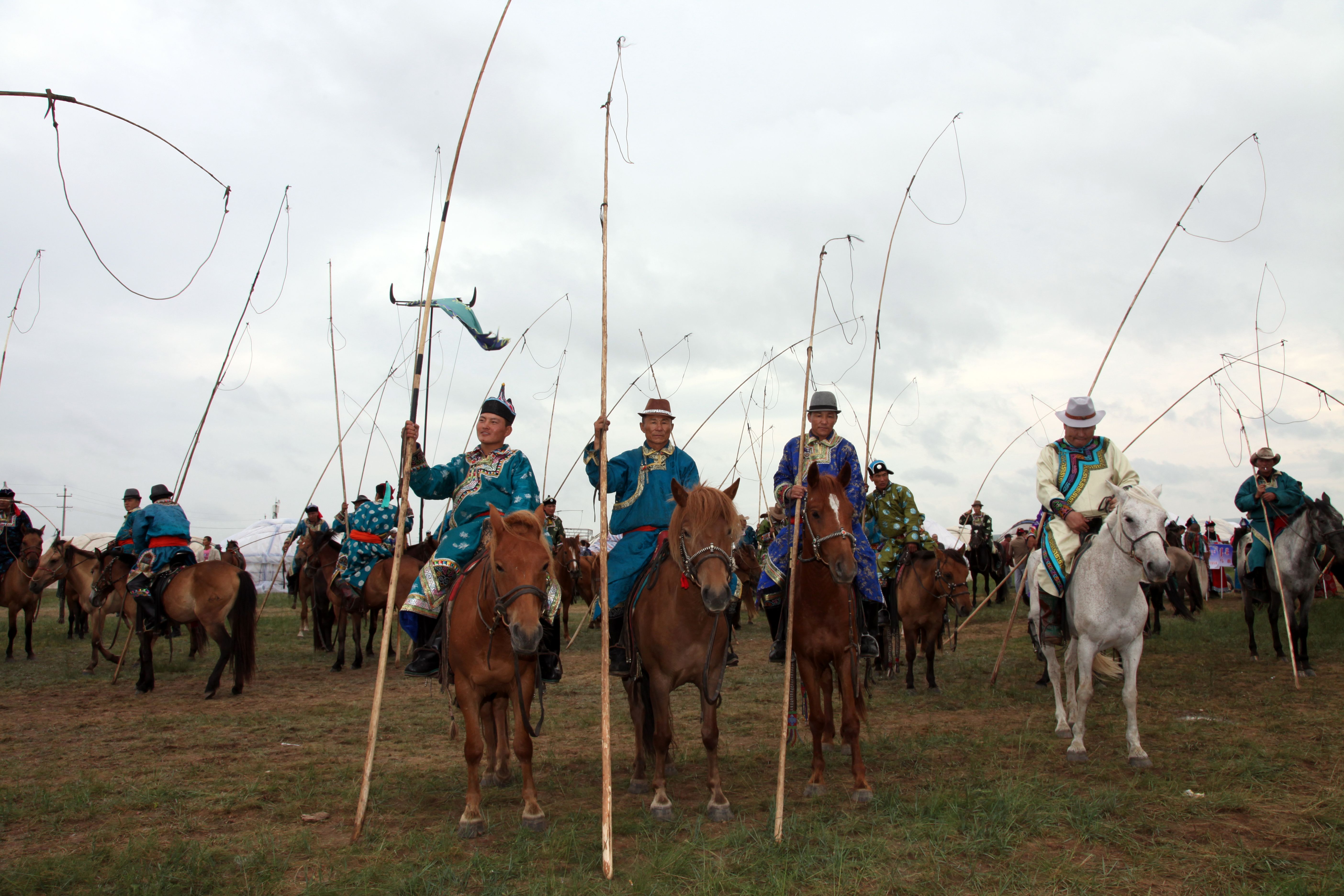 圖片說(shuō)明:蒙古族套馬表演