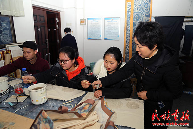 吳安麗老師在凱里學院藝術(shù)學院蠟染實訓室指導學生